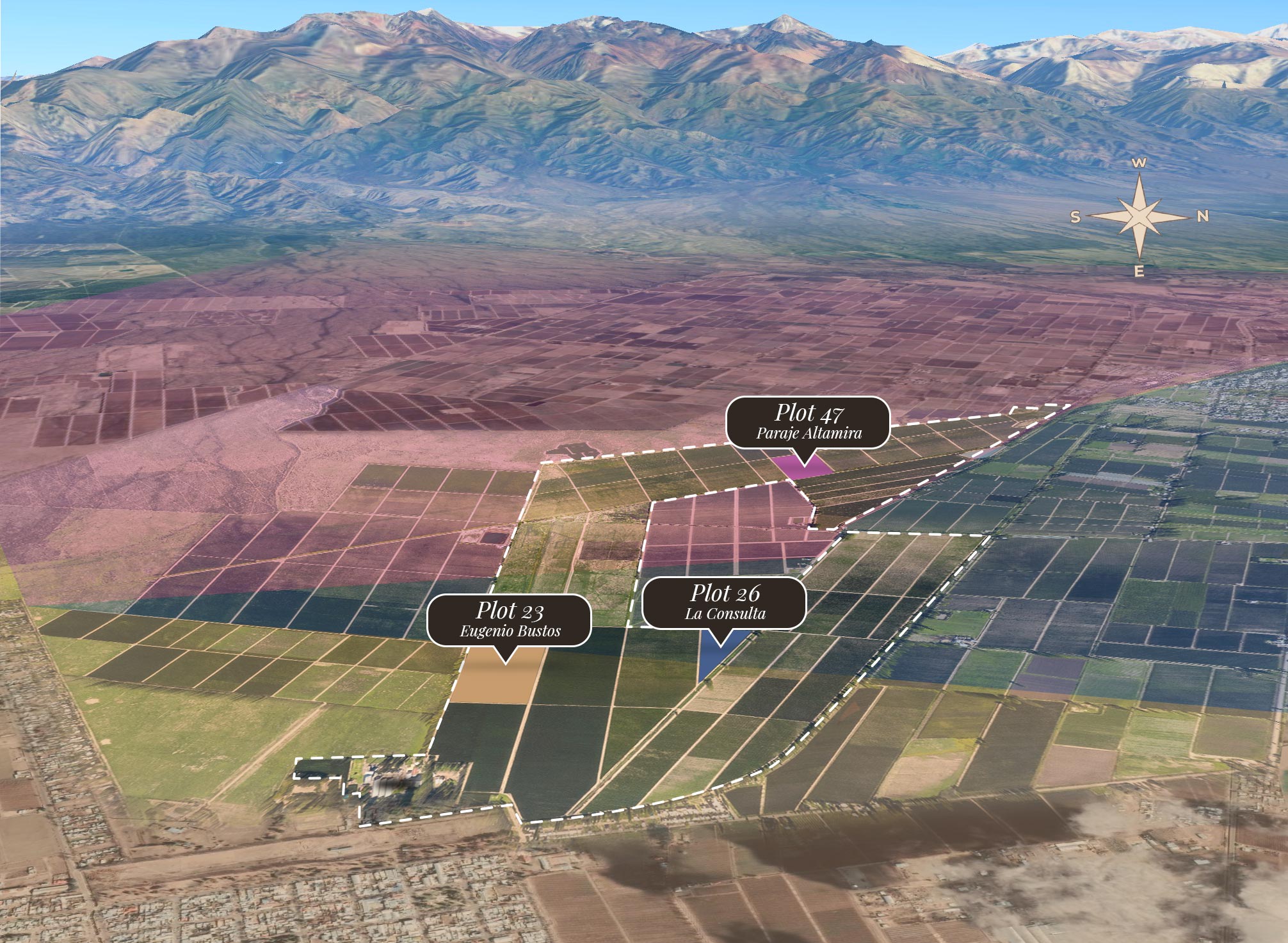 We subdivided our Eugenio Bustos soil into 15 polygons ranging in size from 0.7 to 1.3 hectares. Between 2013 and 2017, we made wine from each of these polygons separately. We concluded that the polygon that best represented our Eugenio Bustos terroir was No. 1, measuring 1 hectare, and located in plot No. 23.
