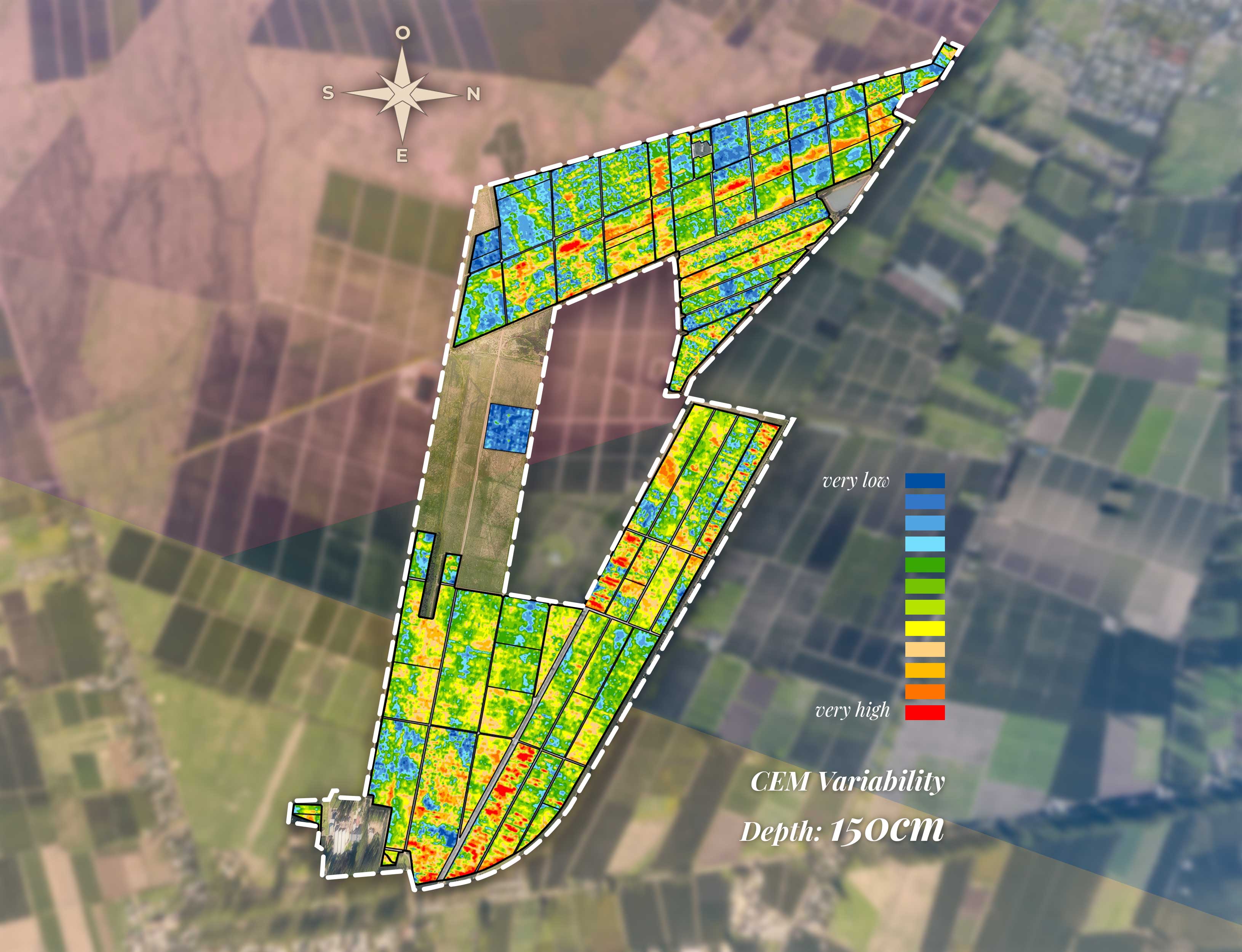We subjected our soil to exhaustive electroconductivity analyses at depths of 246 ft and 492 ft and then prepared over 150 soil pits throughout the vineyard.